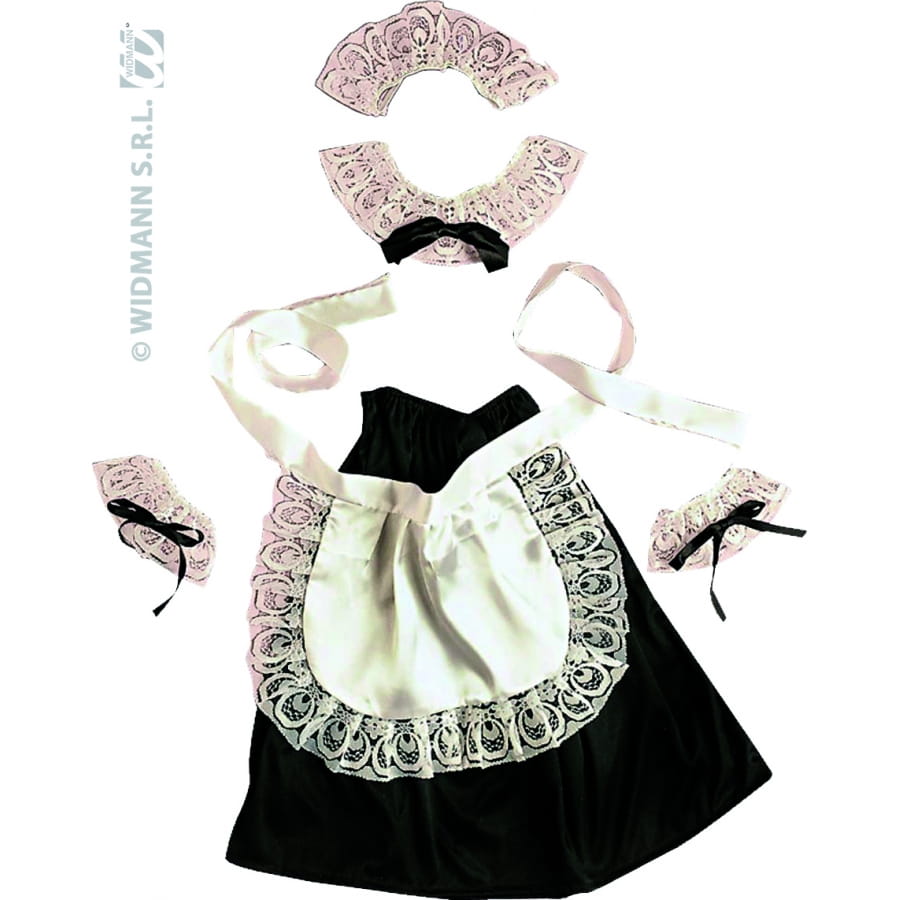 Set de déguisement noir et blanc de femme de ménage. Le set est composé de poignets, d'un col, d'une jupe, d'un tablier et d'une coiffe. Accessoires parfaits pour mener à bien le rôle de soubrette ou de femme de ménage.