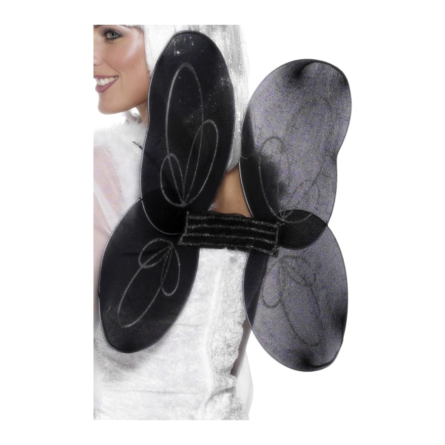 Set d'ange de couleur noire avec ailes et halo assortis. Les ailes sont entièrement noires et agrémentées de fils argentés. Ce set sera parfait pour une fête basée sur le thème des contes de fées.