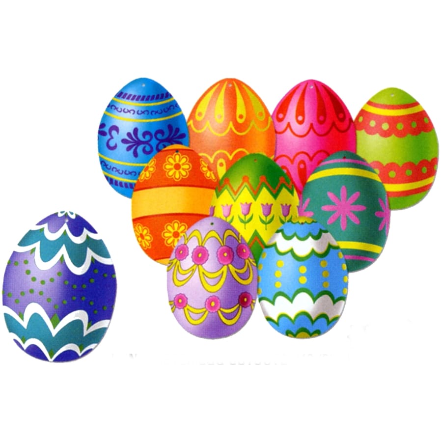 Oeufs en carton, vendus en set de 10. Les oeufs ont deux surfaces qui mesurent chacune 11 centimètres. Chacun des 10 oeufs est imprimé d'un motif unique. Vos enfants seront ravis!