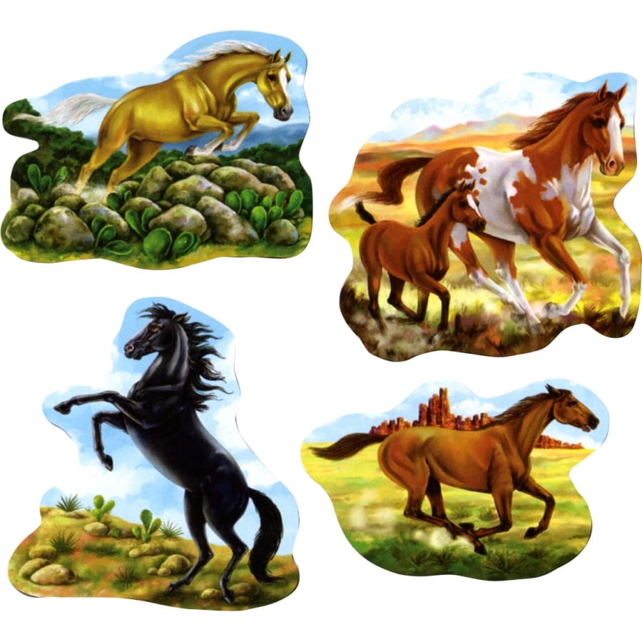 Avec cette décoration western vos invités seront sous le charme. Ces 4 chevaux sauvages qui sont imprimés des deux cotés vont apporter la touche qui manque à votre décoration. De couleur marron, marron et blanc, noir ces chevaux sauvages sont imprimés des deux cotés. De 40cm chacun cette décoration est parfaite pour un anniversaire ou pour le thème animaux.