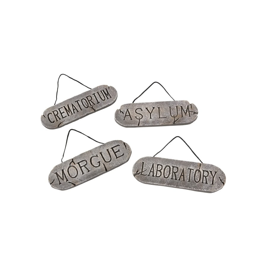 Le set de 4 écriteaux Halloween à accrocher constitue une décoration dédiée à la fête des morts. Il comprend 4 faux bois gris, pourvus de cordons pour les suspendre à un endroit. Le thème général concerne donc la mort, les cadavres, les fous et les expériences scientifiques qui ont mal tourné. Ce set de 4 écriteaux Halloween à accrocher suffit pour vous donner des idées de concept pour votre déco halloween !
