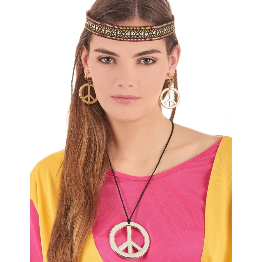 N'hésitez plus à mettre ce set de bijoux peace and love et bandeau dans votre panier pour agrémenter votre tenue.