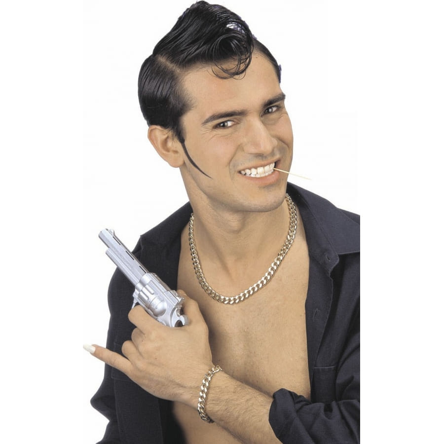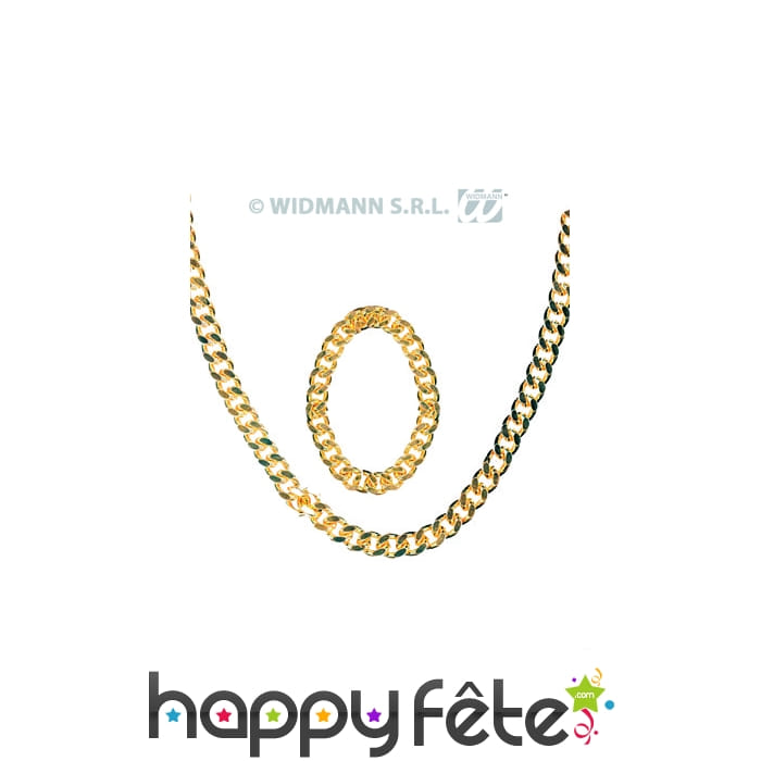 Voici une offre que vous ne pourrez refuser dirait le Parrain... Set de bijoux rappeur ou gangster composé d'un collier et d'un bracelet dorés en mailles gourmette. Idéal pour homme, adolescent ou adolescente. C'est le set d'accessoires parfait pour un déguisement de gangster ou pour une soirée basée sur le thème de la mafia.