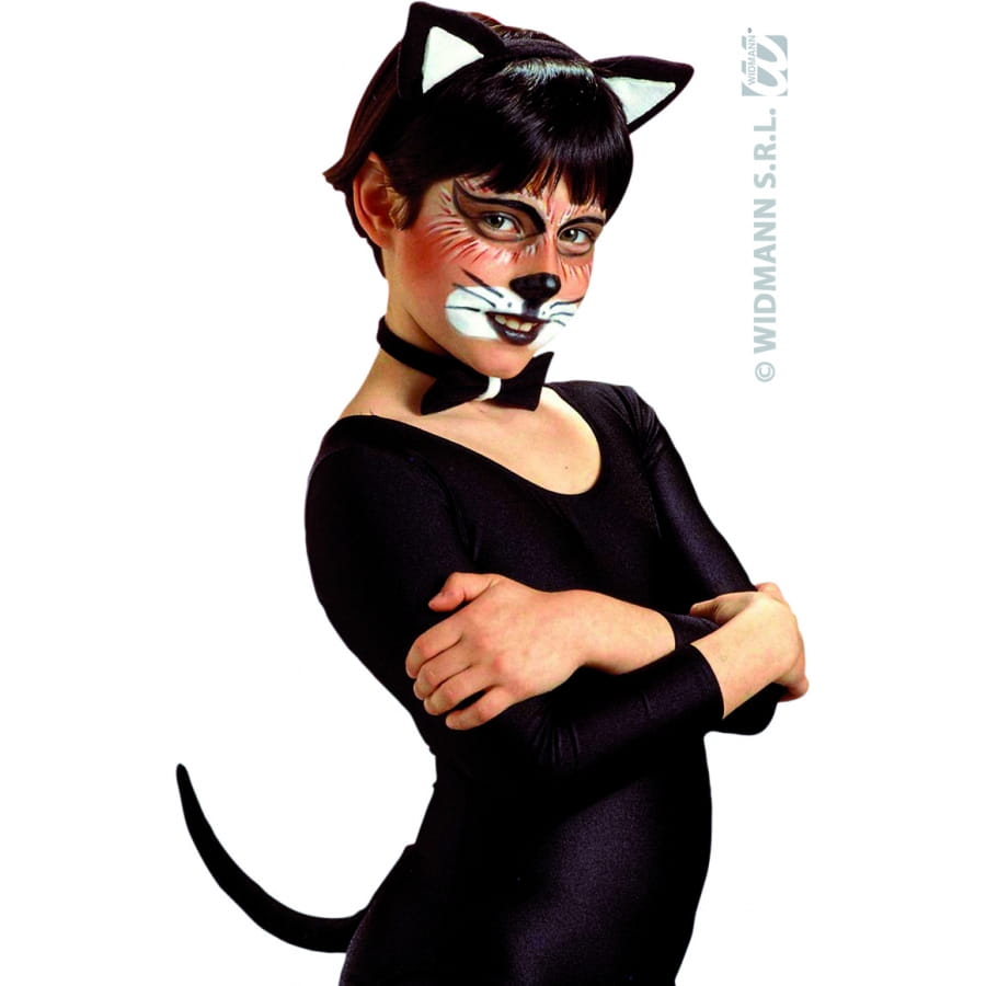 Set de déguisement de carnaval noir et blanc pour enfant, composé d'un serre-tête orné d'oreilles, d'une queue et d'un noeud. L'ensemble est idéal pour faire de votre fille un petit chaton adorable pour une fête d'anniversaire.