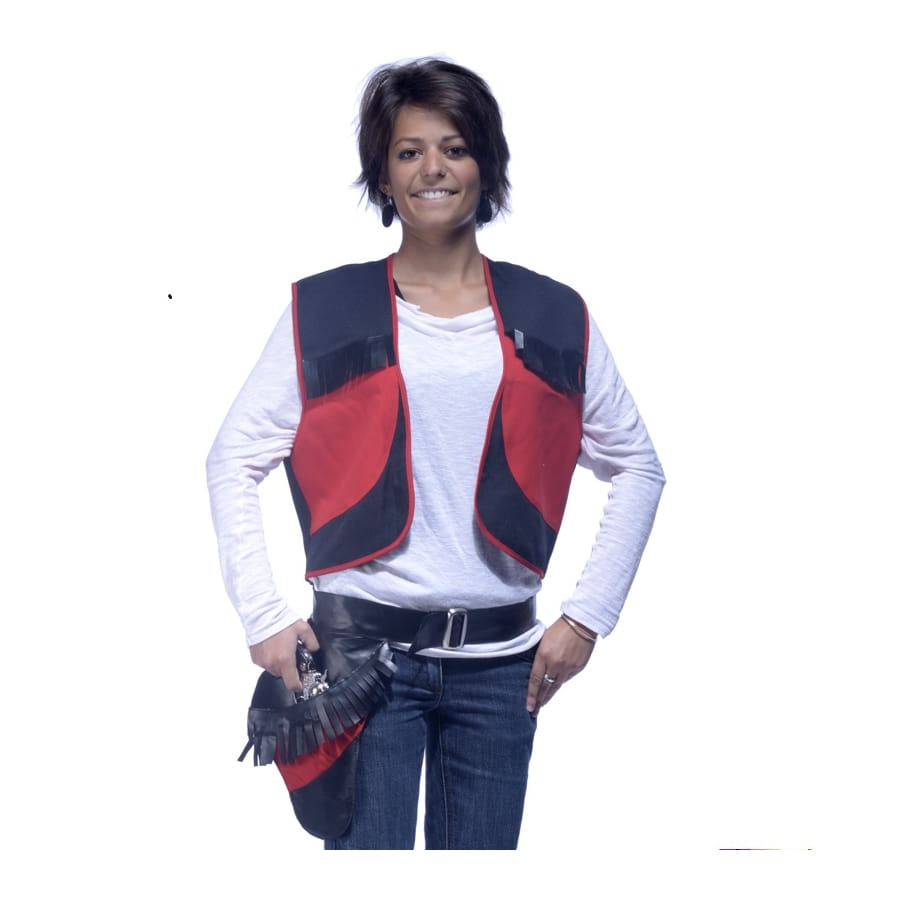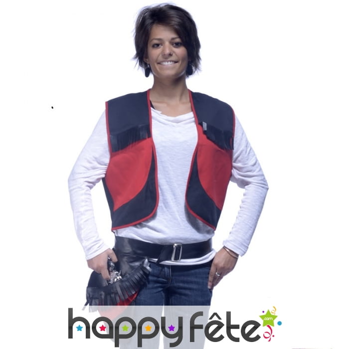 Partez à la conquête de l'Ouest avec ce magnifique set de cow-boy rouge et noir premier prix que nous vous proposons ! Ce set est constitué par un gilet rouge et noir, d'un ceinturon noir à boucle argentée mesurant 90 cm et d'un magnifique holster assorti au gilet. Le devant du gilet et le haut du holster sont ornés de franges. Ce sont des accessoires standards et mixtes, dédiés aux adultes. Indispensable pour entrer dans la peau d'un(e) véritable cow-boy (cowgirl) le temps d'une soirée déguisée ou thématique !