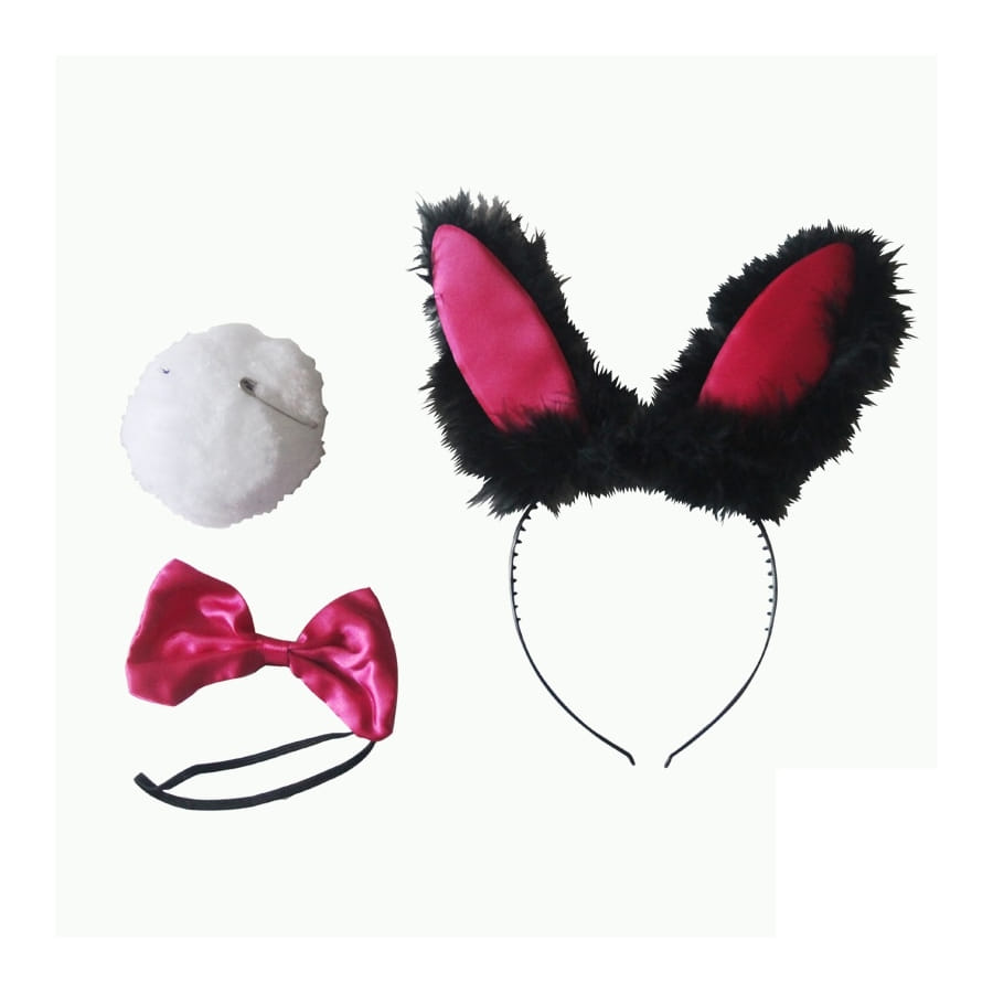 Avec ce set de lapin sexy rose noir et froufrous, Mesdames, vous n'aurez plus besoin de grand-chose pour compléter un déguisement de lapin pour un enterrement de vie de célibataire ou une soirée en amoureux. Il est composé d'un serre-tête noir et rose avec les oreilles, d'une queue toute blanche et d'un noeud papillon rose.