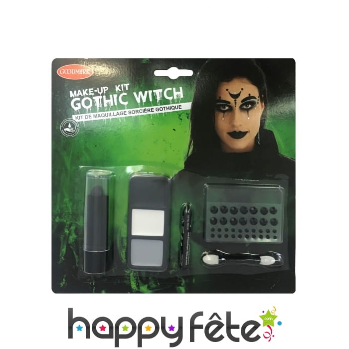 Idéale pour sublimer Halloween, le set de maquillage gothique de sorcière pour femme vous transformera complètement à l'occasion de votre fête préférée.