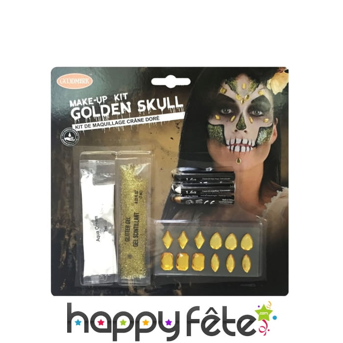 Libérez-vous à Halloween en changeant de visage grâce au set de maquillage avec gemme dorées.