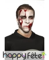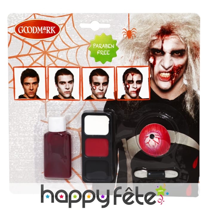 Vous ne pourrez pas jouer pleinement le rôle d'un mort vivant sans tous les accessoires qui vont avec. Côté cosmétique, il vous est conseillé d'adopter le set de maquillage zombie sans paraben. Vous créerez votre personnage avec plusieurs éléments surprises, présentés dans les couleurs blanc, noir et rouge. Ce modèle pour homme ou femme est aussi accompagné d'un petit tutoriel en images.