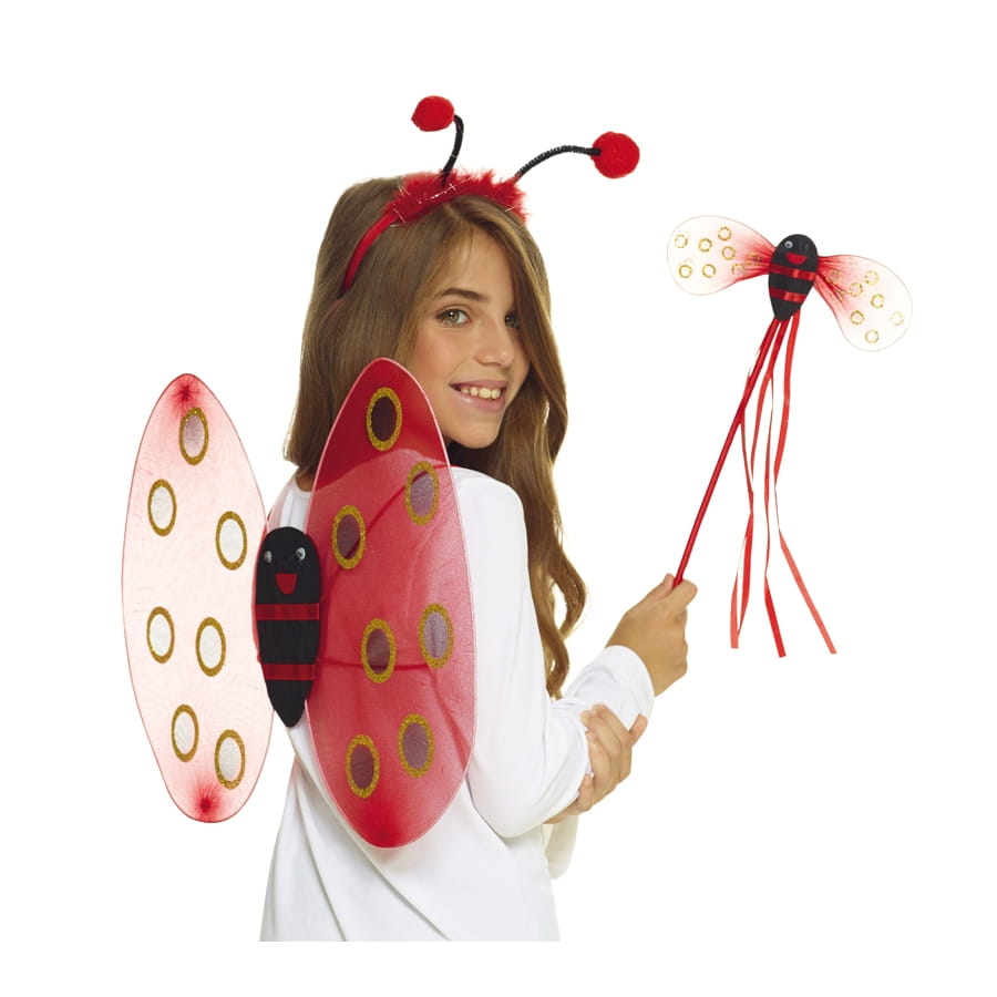 Ce petit animal rouge à pois noirs sur le dos deviendra un héros de conte de fées lorsque votre petite rêveuse enfilera son set de petite coccinelle pour enfant. Ce lot d'accessoires de couleur rouge à pois noirs comporte une paire d'ailes, un serre-tête avec antennes et une baguette.