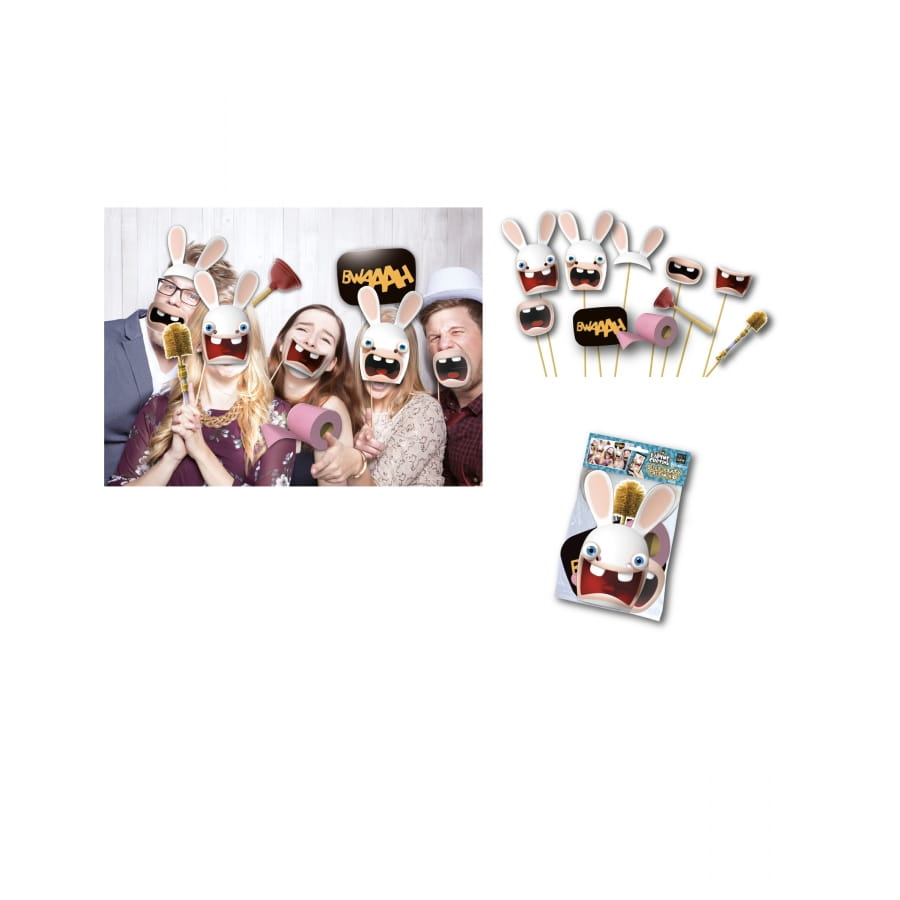 Offrez-vous un petit moment de folie entre amis, en organisant une séance photos avec ce set de photobooth lapins crétins, par 10.