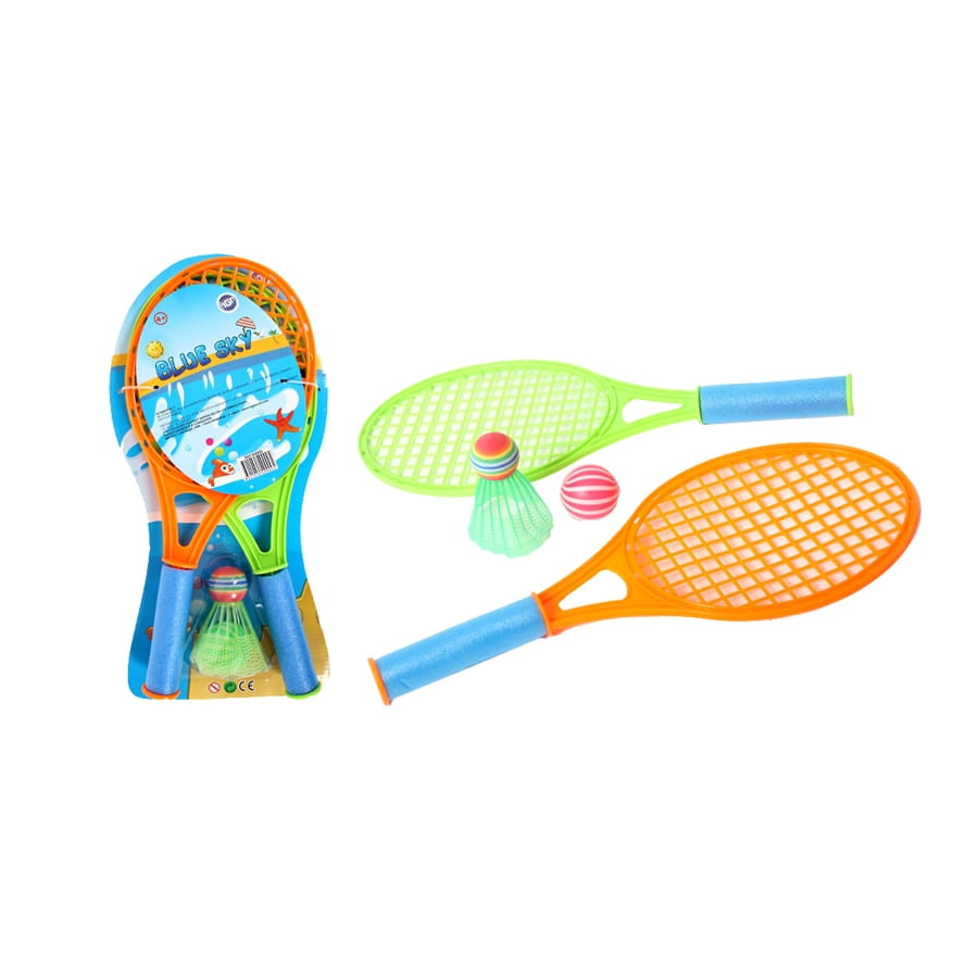 Que vos enfants soient plutôt tennis ou badminton, ce set de raquettes de tennis de plage et accessoires leur fera sauter de joie. Ils disposeront de deux raquettes, d'une balle en mousse et d'un volant en mousse, le tout présenté dans d'éclatantes couleurs flashy. Les couleurs peuvent différer de celles sur la photo.