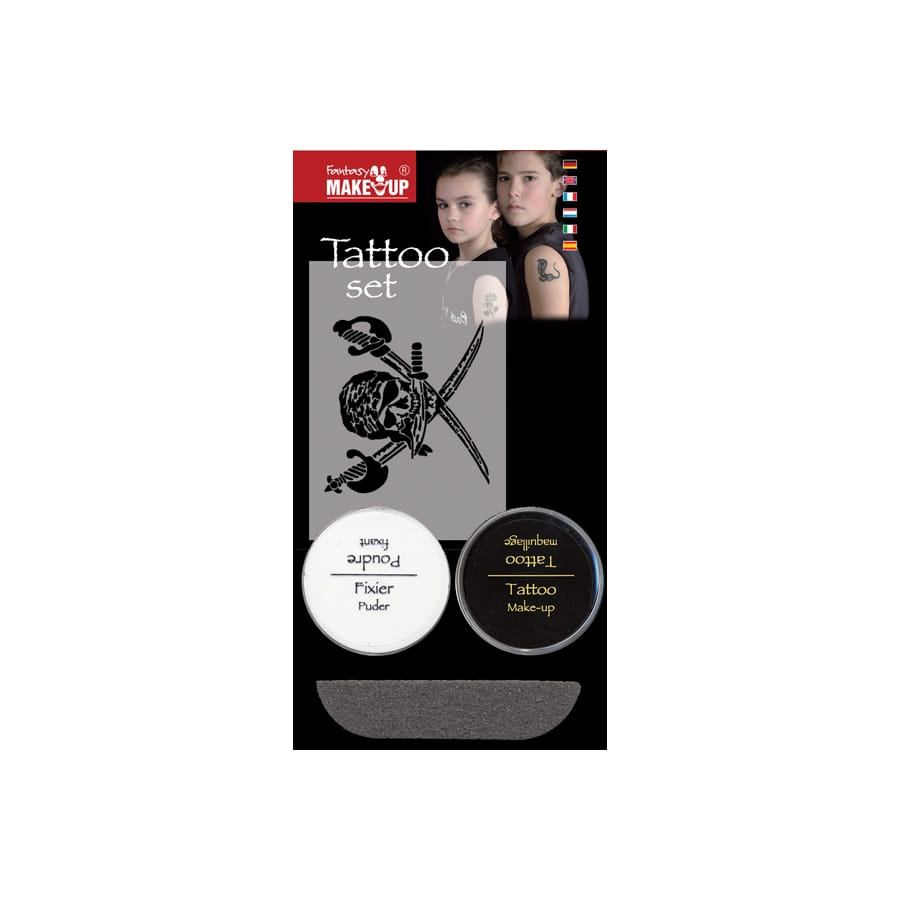 Pour faire plus vrai dans votre déguisement de pirate, portez un authentique tatouage. Ce set de tatoo de qualité, faisant 7 x 6 cm de dimension, est l'élément qu'il vous faut. Loin d'être un accessoire d'amateur, cet article vous offre un pochoir, du maquillage, une poudre fixante et une éponge. Vous pourrez ainsi porter un fabuleux motif pirate sur votre bras, afin d'être au top lors d'une soirée d'Halloween.