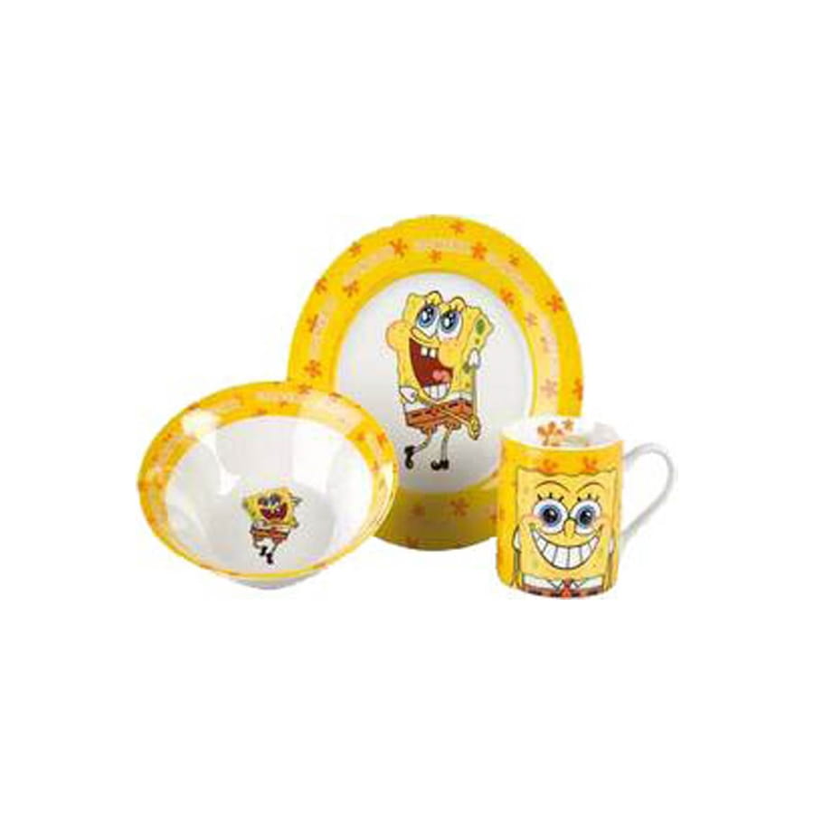 Votre petit garnement retrouvera vite l'appétit grâce à ce set à l'effigie de Bob l'éponge. Il s'agit d'un set pour déjeuner sous licence Bob l'Eponge, composé d'une assiette, d'un bol (assiette profonde) et d'un mug, tous de couleur jaune et blanche. Il retrouvera les images de son héros comique de la mer, et réclamera ces ustensiles à chaque fois que vous mangerez. Il avalera même les brocolis avec l'aide de Bob l'Eponge carrée !