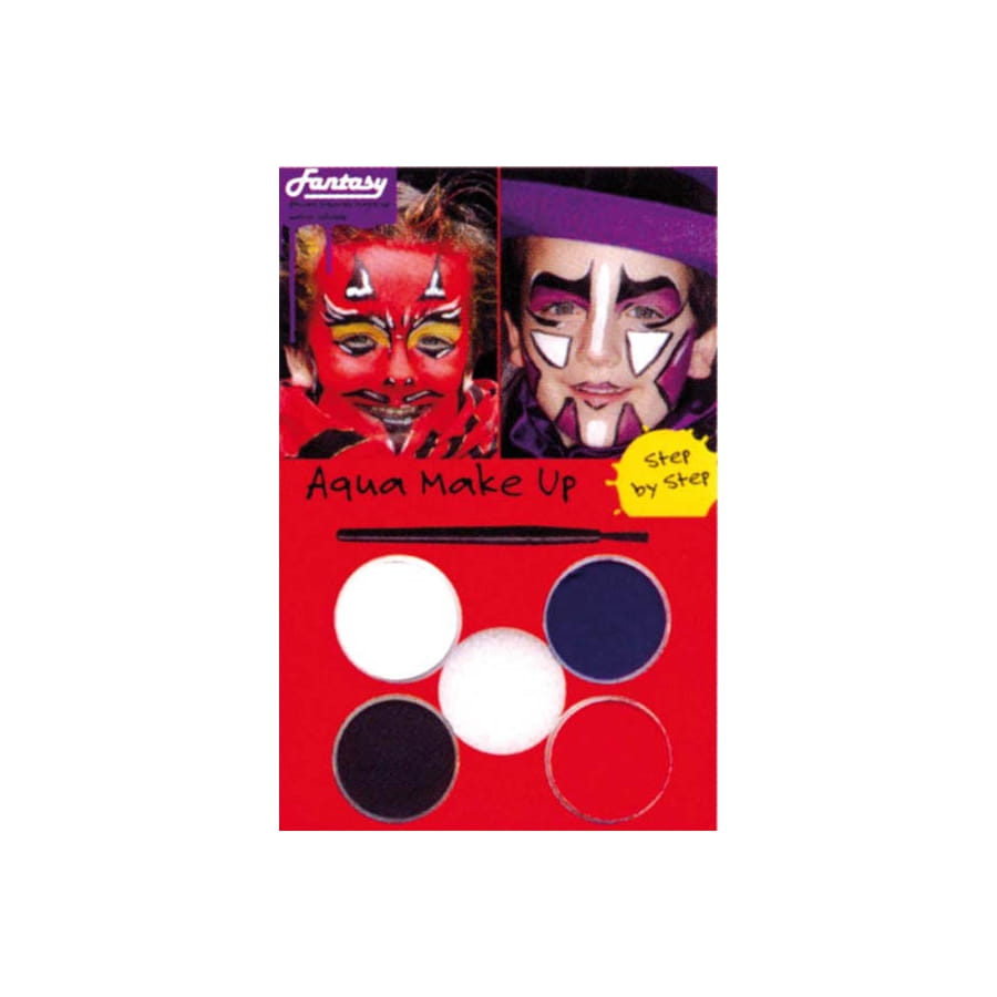 Choisissez un maquillage de qualité pour habiller votre visage, ou celui de vos enfants. Ce set de maquillage aqua express est idéal pour se transformer en diable ou en joker. Il pèse 4x7 g, et il est composé de maquillage, de pinceau et d'éponge. Vous disposerez également d'un mode d'emploi qui vous expliquera les démarches à suivre, étape par étape, pour appliquer ce fabuleux maquillage.