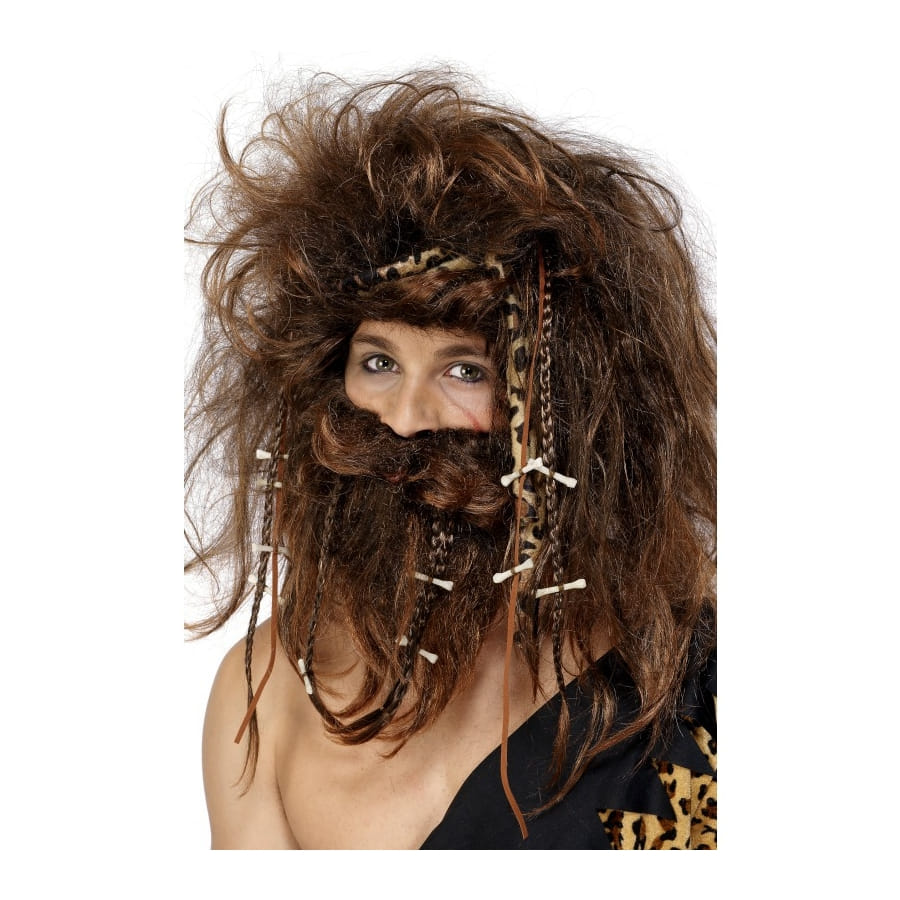 Replongez au début de l'histoire avec ce set homme des cavernes. Vous serez impressionnant grâce a ce kit. Il est composé d'une perruque châtain avec un air décoiffé et volumineux, d'une longue barbe, de tresse ainsi que d'os de couleur blanche.