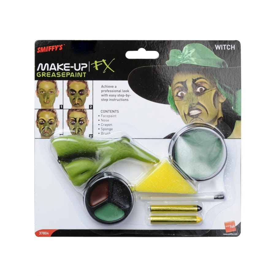 Set de maquillage pour femme, fille ou adolescente, composé d'un faux nez crochu, de crayons, de peinture pour le visage et d'une éponge. Vous serez la plus vilaine et la plus maléfique de toutes les sorcières pour la nuit d'Halloween.