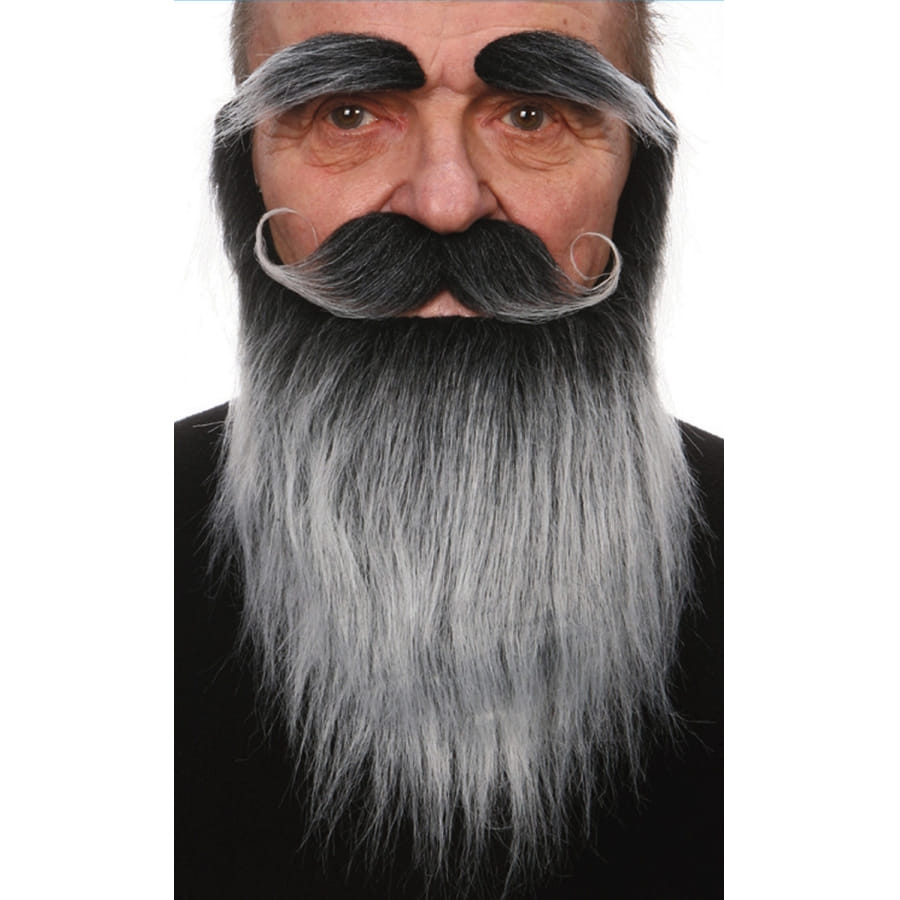 Pour adulte, il se compose d'une moustache, d'une grosse barbe ainsi que de sourcils bien fournis de couleur grise.