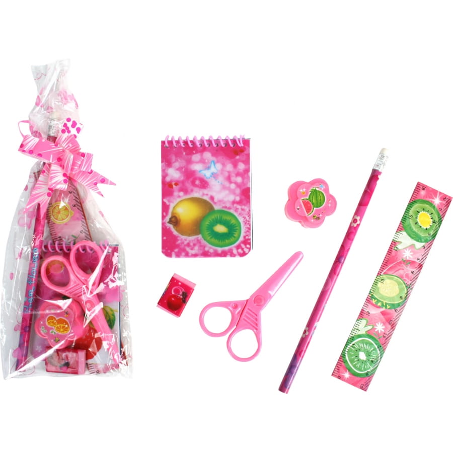 Set de papeterie "Miss Théa" composé de 6 pièces de couleur rose, tous imprimées de thèmes Miss Théa. Les pièces incluses sont bloc-notes, latte, ciseaux, taille-crayon, gomme et crayon. Il est impossible de choisir ni le modèle ni la couleur du set ou des accessoires, vous le recevrez comme présenté.