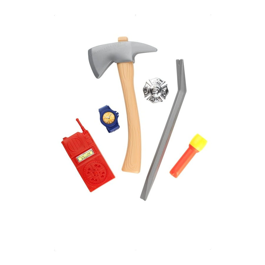 Il rêve de devenir pompier pourquoi ne pas lui offrir en attendant ce set de pompier. Il est composé d'un hache beige et grise, d'un talkie-walkie rouge, d'une montre bleu, d'un badge argenté, d'une torche jaune et rouge.
