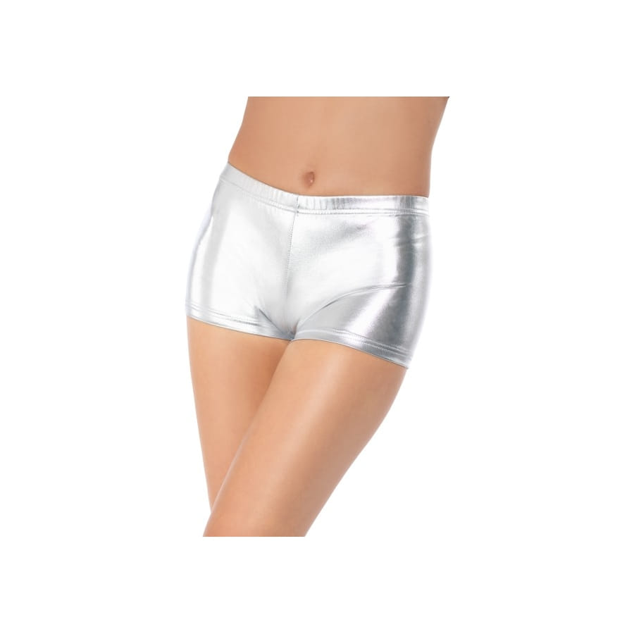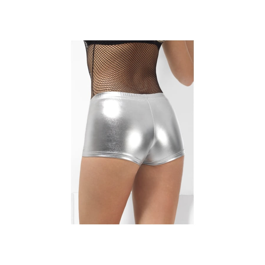 Impossible de rater cette occasion ! Ce mini short moulant argenté effet mouillé saura mettre en avant vos formes. Il a été conçu dans un tissu au toucher lisse avec une allure brillante. La couleur argentée rappelle le look des années 70. Le vêtement se porte aussi bien pour une soirée disco que pour toute autre occasion.