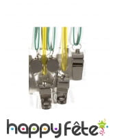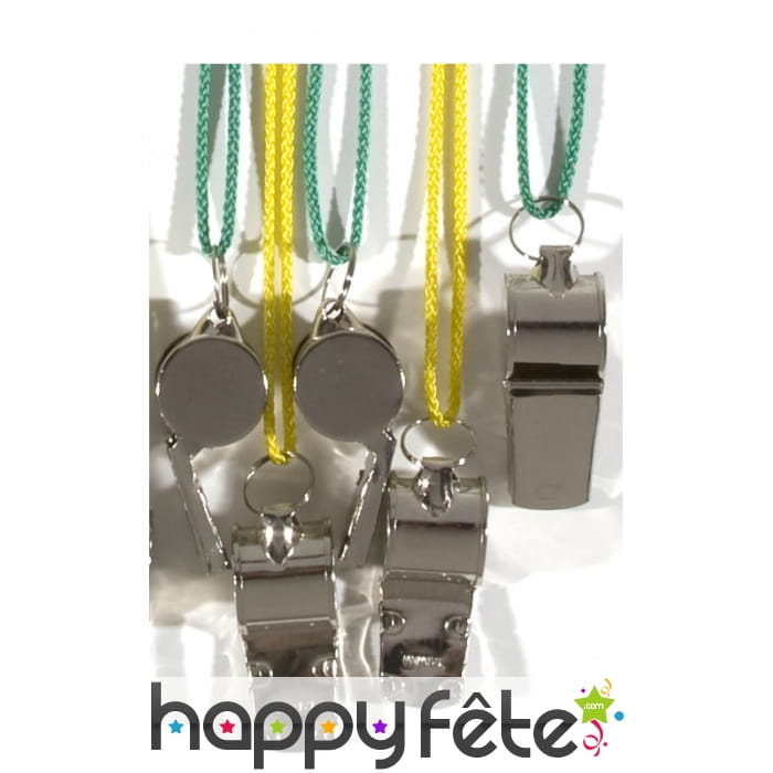 Pour une journée sportive pourquoi ne pas vous procurez ces sifflets, ils sont en métal de couleur argenté avec une lanière de couleur vert ou jaune. Vous pourrez aussi vous en servir pour supporter votre équipe.