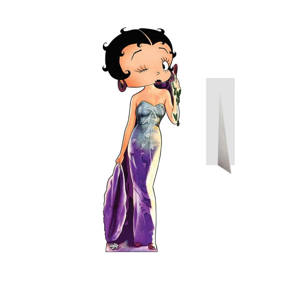 Cette silhouette de Betty Boop en robe de soirée est en carton, mesurant 161 x 57 cm, sous licence Betty Boop et Cartoon. Betty Boop, la petite femme sexy, porte dans cette silhouette une belle robe de soirée violette et nous fait un clin d'oeil. Cette grande et magnifique Betty Boop en carton décorera votre salle de fête ou votre intérieur de la plus belle manière lors de votre prochaine soirée Dessins animés entre amis ou en famille.