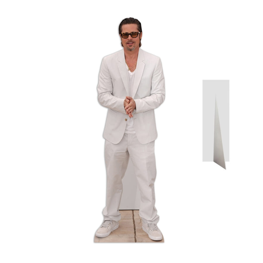 L'indémodable, l'éternel Brad Pitt nous rend visite à l'aide de cette silhouette de Brad Pitt en costume que nous proposons. Une silhouette en carton plat de 186 cm de hauteur vous attend alors sur Happyfete. Elle vous sera d'une grande utilité pour décorer votre fête à thème cinéma car Brad Pitt porte dessus un magnifique costume de couleur blanche, en plus de son charme incontestable.