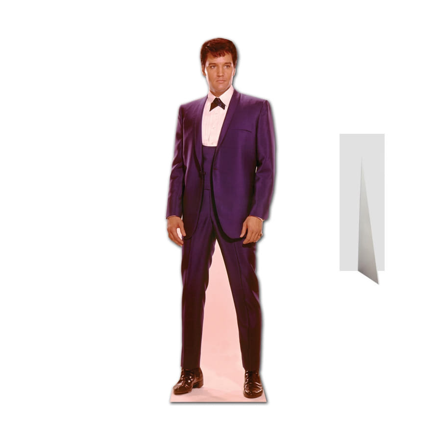 Voici une silhouette taille réelle représentant Elvis Presley en costume violet. Elle est en carton plat, mesurant 180 cm de hauteur, sous licence officielle Elvis Presley. Et voilà une belle décoration pour laquelle tous les fans du King opteront pour décorer leurs fêtes.