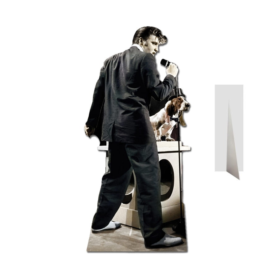 Cette magnifique décoration est à votre disposition ! C'est une silhouette taille réelle représentant Elvis Presley en train de chanter, avec son chien portant un petit chapeau noir. Cette silhouette est en carton, mesurant 186 cm de hauteur. Nous connaissons tous Elvis Presley, le célèbre chanteur et acteur américain, qui a eu une influence mondiale sur la culture musicale. Commandez vite cette figurine si vous organisez une soirée de la musique et si vous voulez épater vos invités. Elle décorera votre salle bien mieux que ce que vous l'avez imaginé.