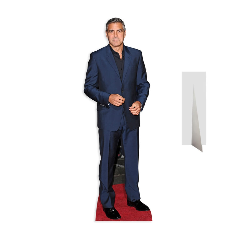 Même à travers une représentation de lui en carton plat, son regard trouble énormément. Nous parlons de cette silhouette de George Clooney sur tapis rouge mesurant 186 cm. Avec un costume de couleur bleue et une chemise noire, il va s'inviter dans votre salon lors de la fête à thème cinéma que vous organisez. Vous n'aurez qu'à le poser à un endroit stratégique et le tour sera joué.