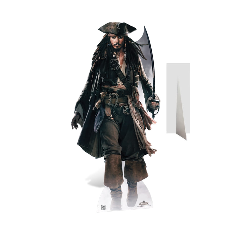 Rien qu'en voyant cette silhouette de Jack Sparrow en carton plat, les personnes présentes à la fête à thème pirate et corsaire rêveront d'action et d'aventure. Cette silhouette décorative représente bien le capitaine Sparrow avec une épée à la main et son accoutrement habituel de couleur marron. Elle est sous licence Disney avec 184 cm de haut et 88 cm de large.