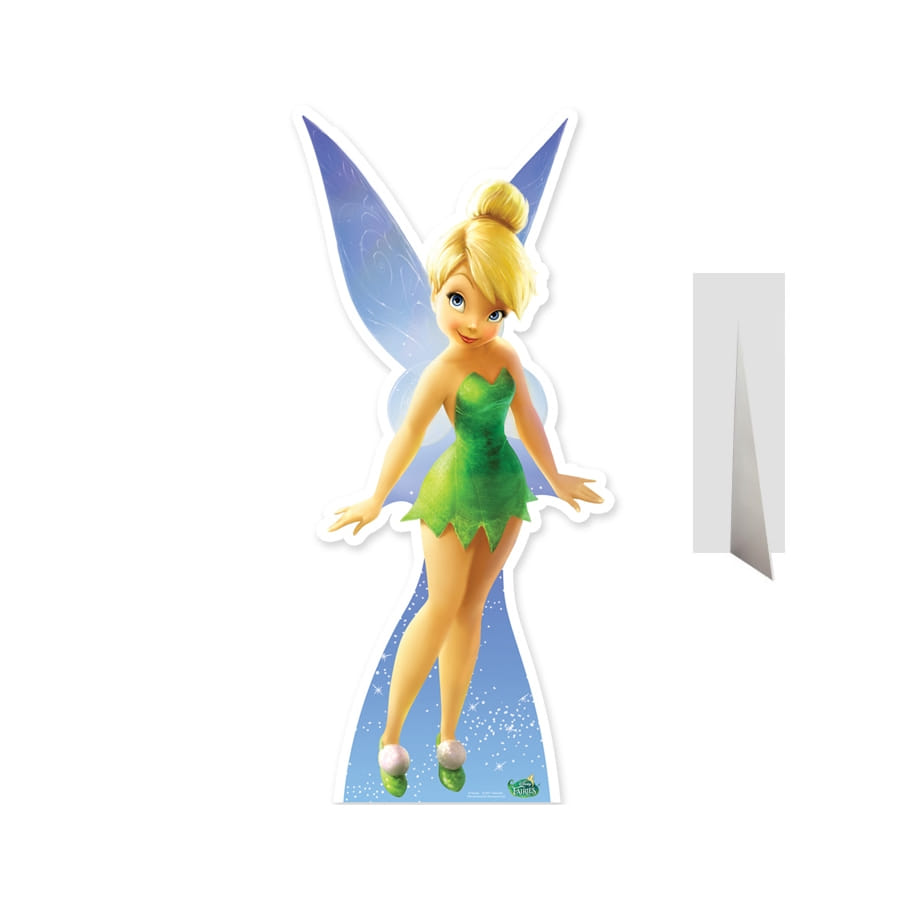 Pour une fois, la petite fée Clochette est représentée en grand malgré sa petite taille, avec cette silhouette de la fée Clochette en carton. Une silhouette qui est sous licence Disney et Peter Pan et a une hauteur de 91 cm ainsi qu'une largeur de 42 cm. L'ensemble est de couleur verte, bleue et beige.