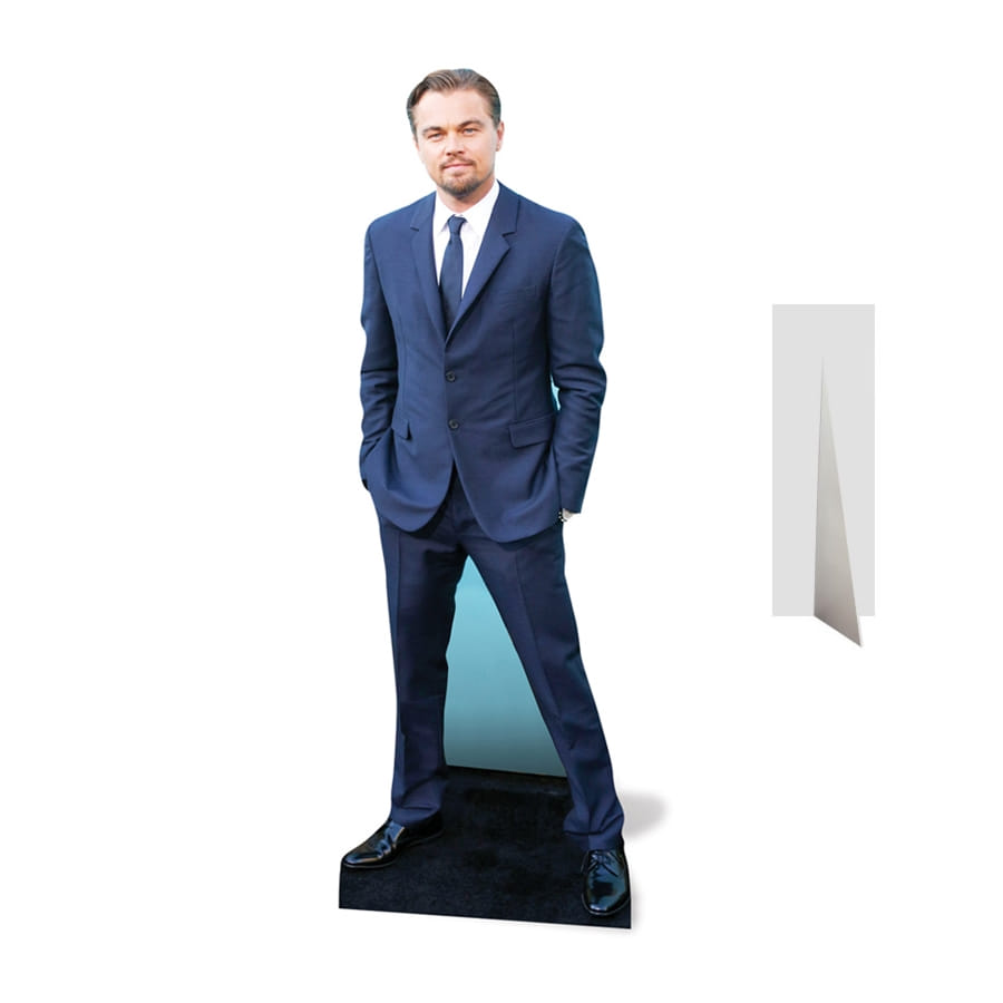 Cette superbe silhouette représente Léonardo Dicaprio vêtu d'un élégant ensemble bleu marine. C'est un très célèbre acteur américain qui a incarné le héros romantique Jack Dawson dans le film Titanic, sans parler de plusieurs autres films dans lesquels il a joué. Cette silhouette mesure 186 cm de haut et est faite en carton plat. Ce sera un article de décoration idéal pour une soirée Cinéma entre amis.