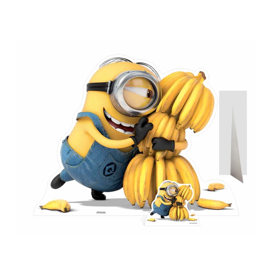 Surveiller de près les bananes est la mission de ce drôle de minion. Cette silhouette de Minons avec régime de bananes va amuser vos invités. Sous licence Disney, elle est en carton plat et fait 100 x 129 cm de dimension. Très réaliste, ce minion de couleur jaune est en train de câliner une grosse quantité de bananes.