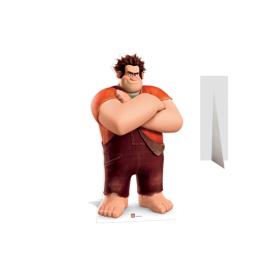 Ralph est notre vedette ici avec cette silhouette de Ralph du film d'animation le monde de Ralph. Elle est sous licence Disney et Jeux vidéo et on y voit Ralph avec sa salopette de couleur grenat et son tee-shirt de couleur orange, montrant ces gros biceps. Cette silhouette a été faite avec du carton, ayant une hauteur de 178 cm et une largeur de 100 cm.