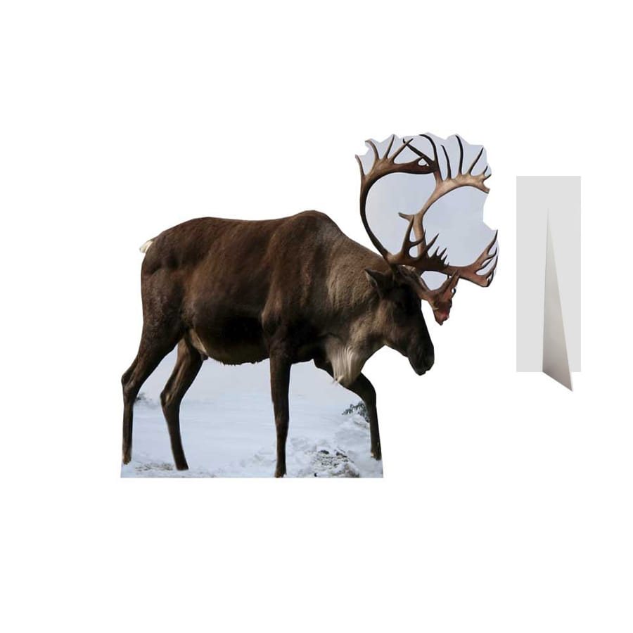 Cette silhouette de Renne en carton taille réelle mesure 152 cm de haut. Le renne est l'un des animaux les plus robustes du monde. Celui qu'on voit ici est brun, grand et possède de longs bois (les organes osseux ramifiés qui sont présents sur sa tête). Ce sera une excellente décoration pour une excellente soirée Animaux !