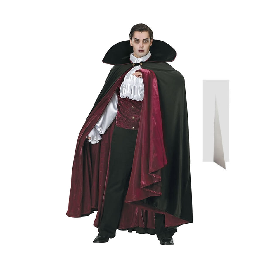 Rajoutez un autre invité encore plus terrifiant à votre fête d'Halloween en posant cette silhouette de vampire en carton plat là où a lieu la fête, pour renforcer en même temps la décoration. Cette silhouette représente un vampire au regard transperçant, vêtu d'une cape ainsi que d'un pantalon et d'une chemise, le tout de couleur noire, rouge et blanche. Elle a 186 cm de hauteur.
