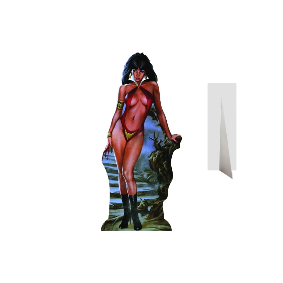 Attention ! Les habitants de la planète Drakulon sont capables de se transformer en chauve-souris à volonté, pour boire du sang ! Vampirella en fait partie ! Cette silhouette de Vampirella en carton de 181 cm est disponible pour tous, que ce soit pour décorer une salle de fête pendant une soirée Halloween ou pour orner votre intérieur.