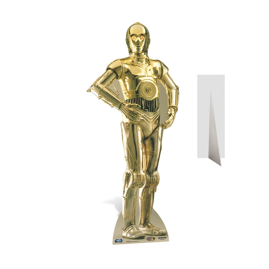 Nous retrouvons notre droïde préféré sur Happyfete avec cette silhouette de Z-6PO de taille réelle. Avec sa belle couleur dorée habituelle, sur cette silhouette en carton, sa photo est sur fond blanc. Une hauteur de 176 cm et une largeur de 75 cm, telles sont les mensurations de cette silhouette sous licence Star Wars.