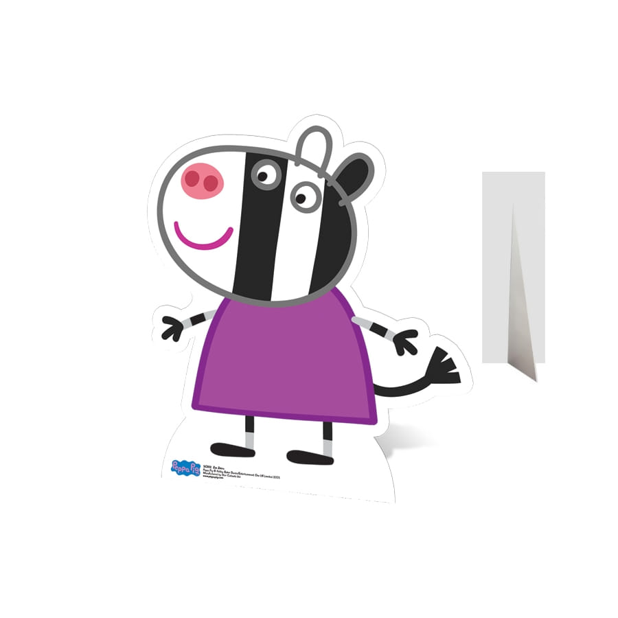 Nous vous proposons cette silhouette de Zoé zèbre de Peppa Pig comme article de décoration. Elle sera très jolie parmi les ornements d'une fête d'enfants. De plus, ses couleurs violette, blanche et noire sont très ornementales. D'une dimension 68 x 60 cm, elle a été fabriquée en carton.