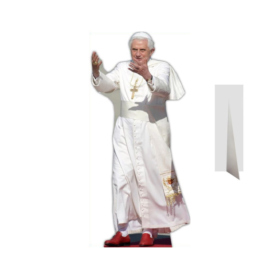 Le pape est toujours le bienvenu dans toutes fêtes catholiques. Si vous en organisez une prochainement, la vue de cette silhouette du pape Benoit XVI ravira tout le monde. C'est une figurine géante de 180 cm de haut et de couleur blanche. Elle a été faite en carton.