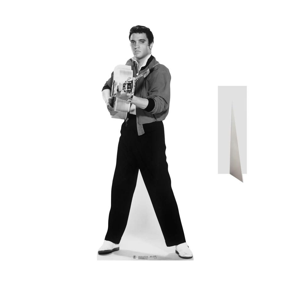 Cette silhouette en carton taille réelle représente Elvis Presley, le plus célèbre des chanteurs de rock des années fifties, alors qu'il était dans sa pleine jeunesse. La silhouette est en carton plat, mesurant 180 cm de hauteur. Vous pourrez l'utiliser comme décoration, à l'occasion de la fête de la musique par exemple ou tout simplement pour décorer votre chambre ou votre salon. Ainsi, vous pourrez voir votre idole tous les jours, c'est cool, n'est-ce pas ?