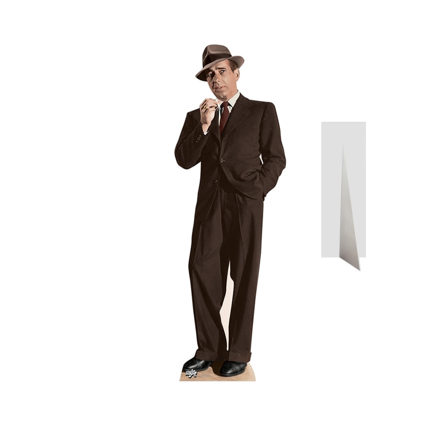 Invitez une grande star du cinéma Hollywoodien dans votre salon ! Choisissez cette silhouette en carton de Humphrey Bogart, géante, mesurant 181 x 60 cm. Humphrey Bogart est un grand acteur américain des années 30, demeurant l'un des mythes les plus indéniables de l'histoire du cinéma. Cette silhouette représente la star dans son ensemble marron avec sa cigarette. Voilà une décoration originale qui embellira votre intérieur ou votre salle à l'occasion de votre prochaine soirée à thème, et qui ne manquera pas d'épater vos convives !