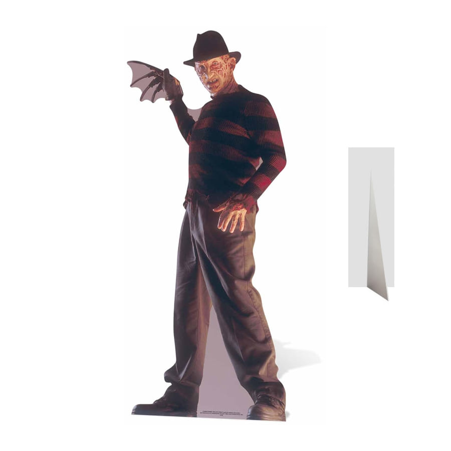 Si vous êtes un adepte de Freddy Krueger, cette silhouette Freddy Krueger de taille réelle vous plaira certainement. Confectionnée dans du carton plat, elle mesure 174 cm et représente le personnage dans son pantalon marron, son pull à rayures et son chapeau. A utiliser comme décoration dans une salle ou dans une chambre (pour les plus téméraires) par exemple.