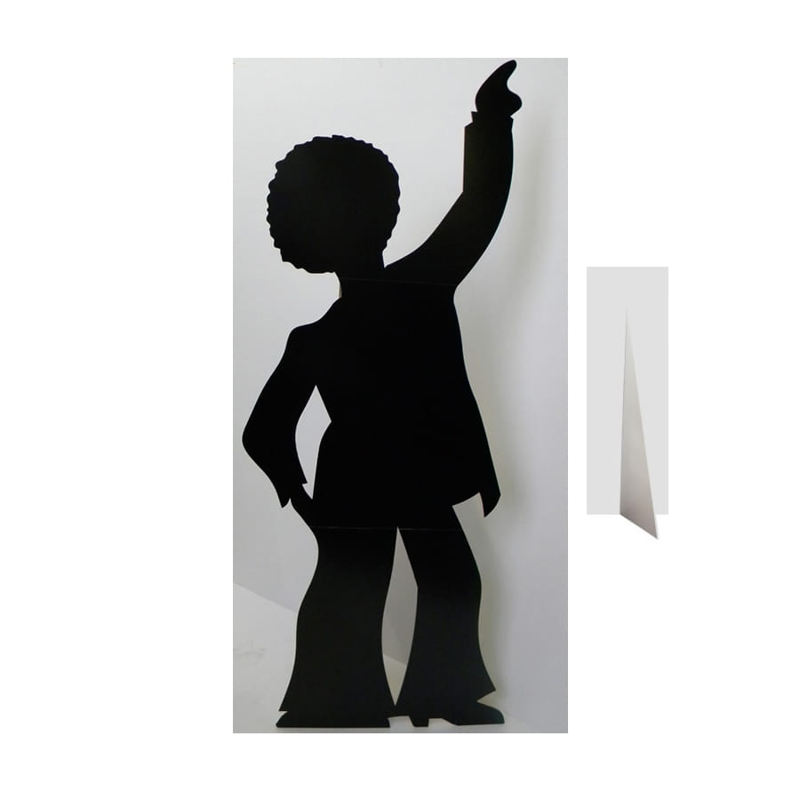Une fois placée à l'entrée de votre soirée Disco, cette silhouette noire danseur disco en carton ne manquera pas de faire sensation. Géante, cette figurine possède une hauteur de 193 cm, ce qui ne passera sûrement pas inaperçu. Elle est faite en carton plat, représentant un danseur dans un look disco. Cet article s'installera facilement grâce à un trépied situé à l'arrière.