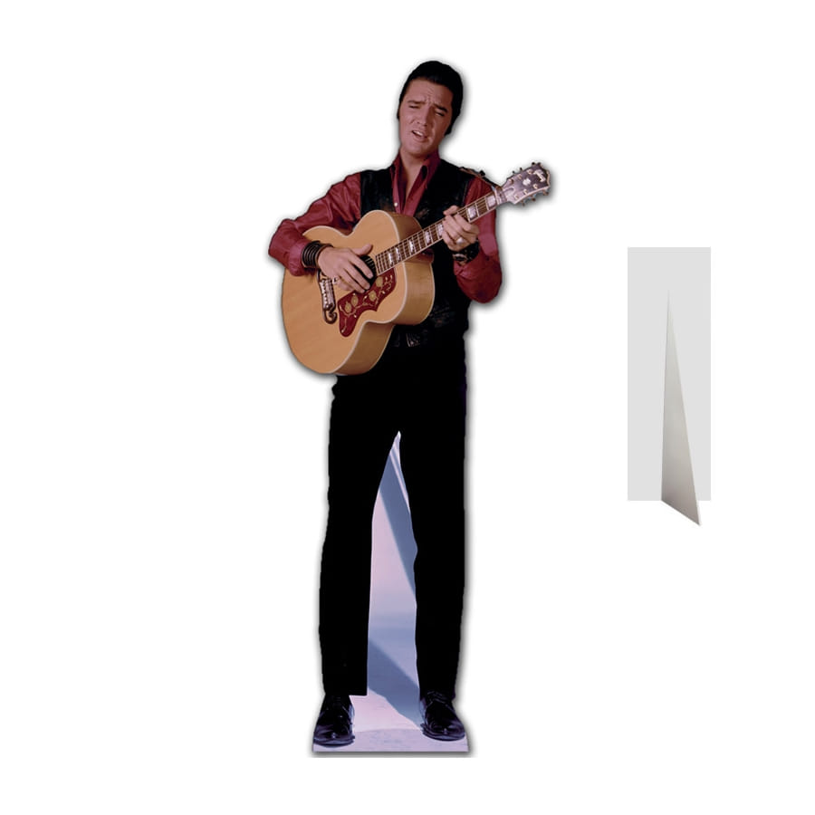 Voici une silhouette grandeur nature de Elvis Presley en carton plat, en train de chanter avec sa guitare. Cette silhouette mesure 181 cm, sous licence Elvis Presley. Votre prochaine fête est sur le thème "Musique", "Star" ou "Rock'n roll" ? Alors, ne ratez pas cette belle figurine pour décorer votre salle. Elle va affoler toutes les fans d'Elvis.