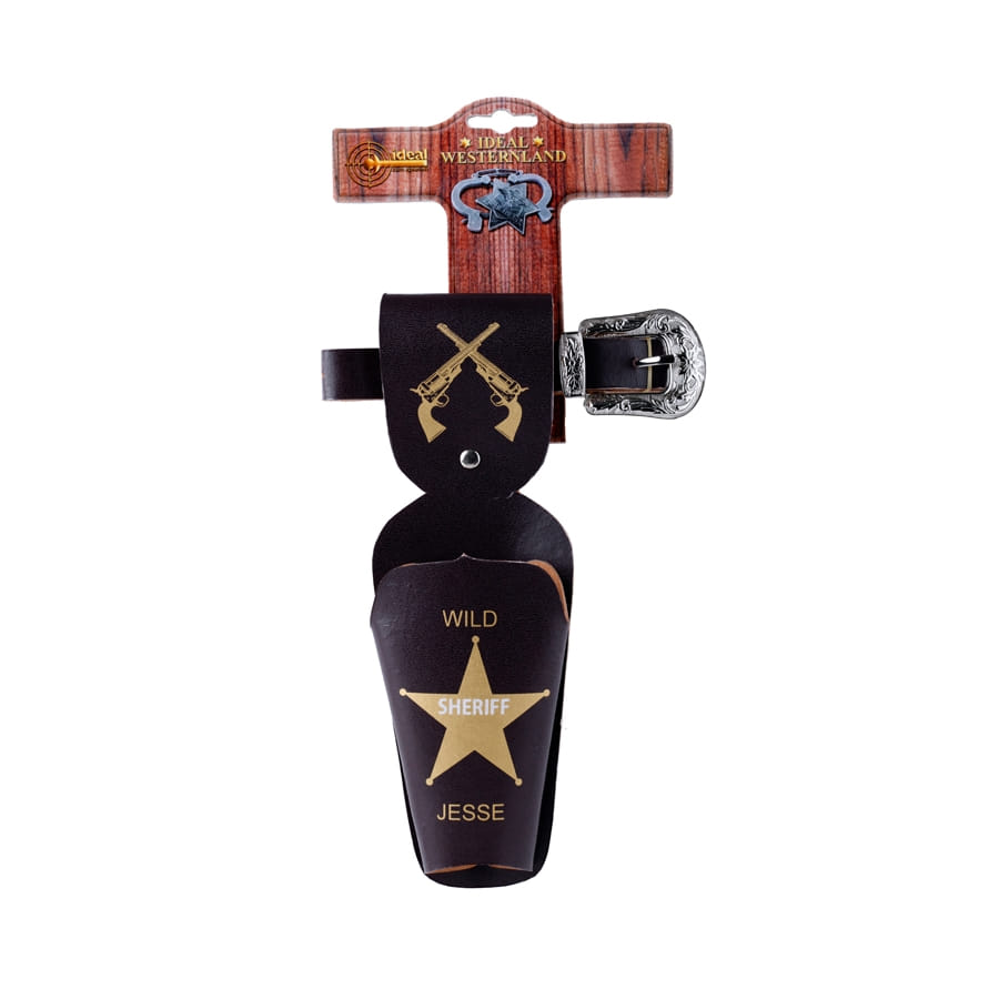 Ce superbe holster de shérif complétera à merveille votre déguisement de cow-boy le temps de votre prochaine soirée déguisée. Il est de la marque "Wild Jesse", fait en métal et en PVC. Ce holster est de couleur noire, ornée par des impressions dorées représentant l'étoile du shérif, qui apportera une touche très western à votre déguisement. Il est déjà accompagné d'une ceinture noire avec une boucle argentée, mesurant 50 à 90 cm. Les bandits ont intérêt à bien se tenir car le shérif va bientôt débarquer avec son bel uniforme, muni de son superbe holster !