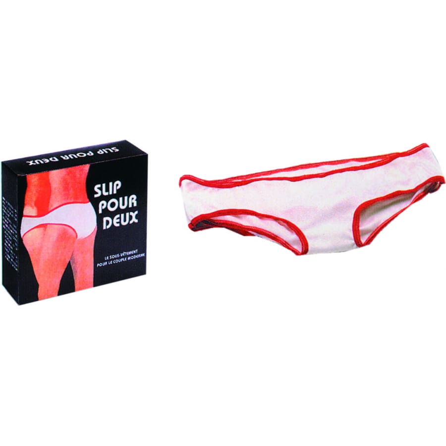 Ce slip pour deux est idéal pour faire un cadeau à un jeune couple. Ils seront inséparables. Cette boite de slip contient deux slips, de couleur blanc avec les bords de couleur rouge. De très bonne qualité, ils pourront le mettre pour une soirée sexy.