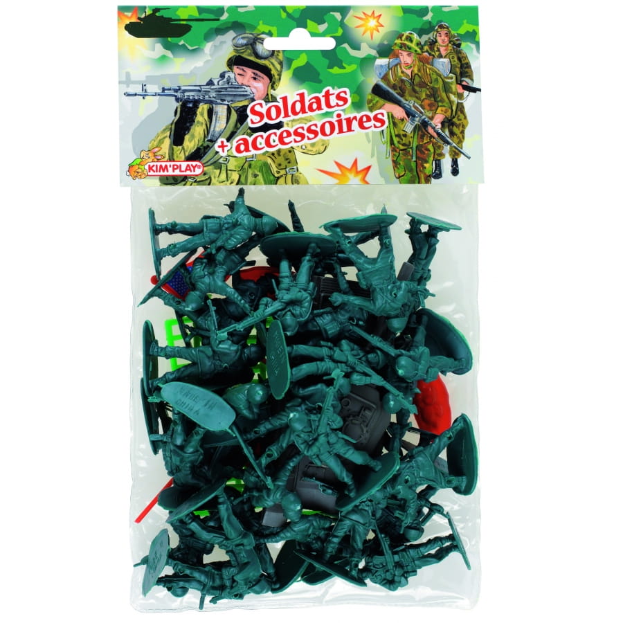 La guerre éclate ! Les soldats se doivent de servir leur pays. Munis de leurs armes et de leur courage, ces vaillants patriotes partent défendre leur peuple et leurs intérêts. Les petits garçons imagineront des tas de scénarios autour de ce thème, grâce à ce sachet de jouets soldats modernes en plastique. Ils sont même fournis avec de multiples accessoires. Ils portent tous la typique couleur vert armée. Ces soldats sont prêts à tout pour remporter la guerre, alors dépêchez-vous de vous les procurer !